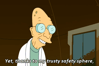 Yet, thanks to my trusty safety sphere, I sublibed with only tribial brain dablage. And the others? Right here, behind this horror-cloth. Are they dead? No, no, no, no. Much worse. (FRY SCREAMS)