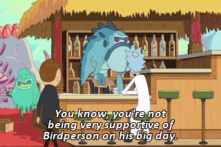 You know, you're not being very supportive of Birdperson on his big day.