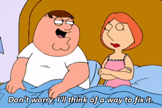 Don't worry. I'll think of a way to fix it. No. We'll think of a way to fix it! I'm tired of being left out of all our decision-making. Ok, honey. By the way, I bought a chimp.