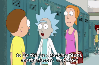 to do this as a fucking team, motherfucker. Tiny Rick! Yeah! Oh, my god, Toby Matthews! Hey, Toby. I'm Tiny Rick. I'm new.