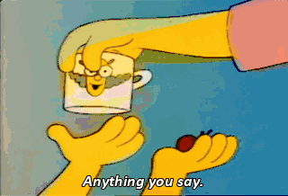 Anything you say. Uh, Bart, would you wager your cupcake against my-- Save your breath. What do you think of the new kid ? A rather mediocre genius. Yes, not very bright at all.