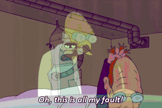 Oh, this is all my fault! That's awful, Professor. Especially the making out part. Yeah. I didn't need to hear that. All modern robots descend from my original smog-blasting designs,