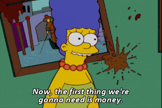 Now, the first thing we're gonna need is money. I'm so sorry, Marge. But I guess you get the bill? Oh, for the love of pizza! Luigi Risotto? That's me.