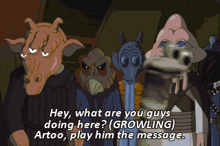 Hey, what are you guys doing here? (GROWLING) Artoo, play him the message.