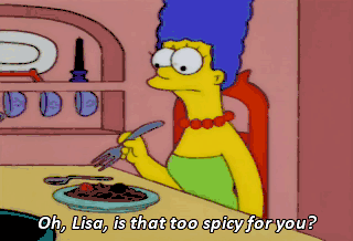 Oh, Lisa, is that too spicy for you? I can see through time. Stop being such babies. You can't be afraid to try new things.