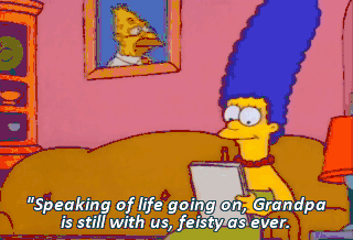 "Speaking of life going on, Grandpa is still with us, feisty as ever.