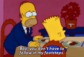 Boy, you don't have to follow in my footsteps. Don't worry. I don't even like using the bathroom after you.