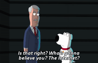 Is that right? Who's gonna believe you? The Internet? You'll be just another nut-job, left-wing blogger. Security! MAN: Everything's fine. No, it isn't. Get in here.