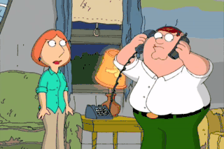 Yes, It's Peter Griffin. G-R-I-F-F-I-N. Wait a minute. You're the sheriff? H-Hang on one sec, honey. I'm on the phone. Who's that? My wife.