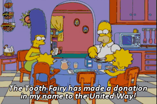 The Tooth Fairy has made a donation in my name to the United Way! That gossamer witch!