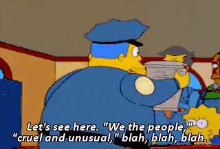 Let's see here. "We the people," "cruel and unusual," blah, blah, blah.