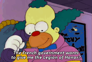 The French government wants to give me the Legion of Honor? Where do I receive this prestigious award? Izzy's deli, 1:00. Thank you, Monsieur President.