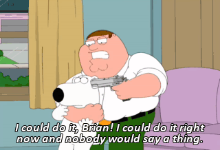 I could do it, Brian! I could do it right now and nobody would say a thing. I could blow your brains out and they'd throw me a parade!