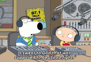 I swear to God that was supposed to be "food fight."
