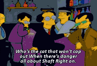 Who's the cat that won't cop out When there's danger all about Shaft Right on.