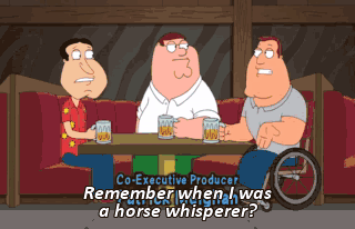 Remember when I was a horse whisperer? (NEIGHING) Shh, shh, shh. That's right. I bet you're hungry. It's okay. (SNIFFS) That calmed you down, you fucking horse.