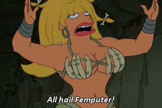 All hail Femputer! All hail Femputer! - You all obey a big computer? - Yes.