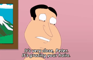 It's very close, Peter. It's grazing your hairs. Come on, Peter. Sir Ian McKellen does this. You can do this. Here we go. Here we go. Here we go! Just do it!