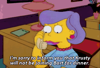I'm sorry to inform you that Krusty will not be joining Bart for dinner.