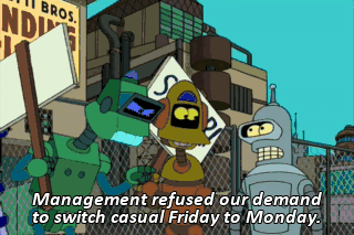 Management refused our demand to switch casual Friday to Monday.