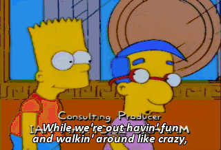 While we're out havin' fun and walkin' around like crazy, those teachers are cooped up in school like morons! Mmm, here we go again. Skinner!