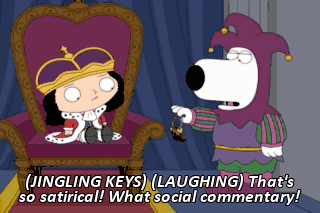 (JINGLING KEYS) (LAUGHING) That's so satirical! What social commentary!
