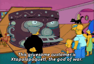 This gruesome customer is Xtapalapaquetl, the god of war.