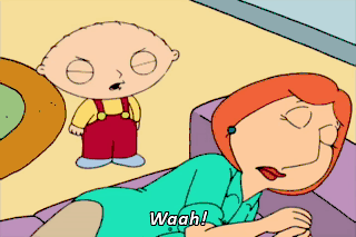 Waah! Blast! Jeez. Lois, what are you doing lying on the couch at this hour? Have you been drinking? Peter, you know I never drink.