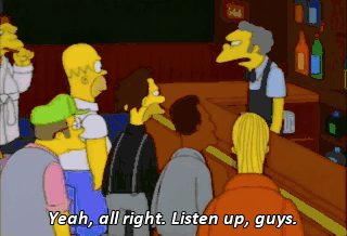 Yeah, all right. Listen up, guys. The Springfield Police have told me that 91% of all traffic accidents... are caused by you six guys. I knew we could do it!