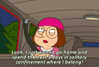 Look, I just wanna go home and spend the next 3 days in solitary confinement where I belong! Well, I tried.
