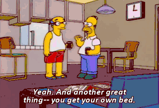 Yeah. And another great thing-- you get your own bed. Uh, I sleep in a racing car. Do you? I sleep in a big bed with my wife. Oh, yeah.
