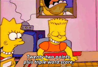 Twenty-two points, plus triple word score, plus 50 points for using all my letters. Game's over. I'm outta here.