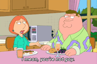 (STEWIE MUTTERING) What? I said homosexuality is wrong.