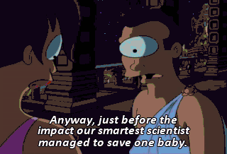 Anyway, just before the impact our smartest scientist managed to save one baby.