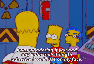 I was wondering if you had any industrial-strength adhesive I could use on my face. Well, let's see what we got in the old drawer. Eh. Eh. Aha! There's some glue.