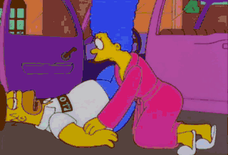 That's no way to address Sir Drinks-a-Lot. Come on. Let's get you inside and scrape the gum out of your hair. Okay. Hey, Marge. What's your favorite radio station?