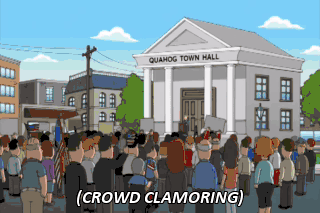 (CROWD CLAMORING) People, please, first things first. Is there anyone here for the couch off of Craigslist? I am. Oh, good, come on in.