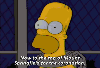 Now to the top of Mount Springfield for the coronation. Remove the Stone of Shame. Whoo-hoo! Attach the Stone of Triumph.