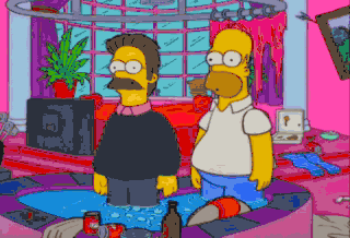 G'ah! Hey, smooth move, Flanders. And I'm Mrs. Homer Simpson. Here comes that vomit again. Eww. Okay. Okay. Okay.