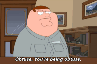 Obtuse. You're being obtuse. Two months in the hole. Or am I being obtuse? No, now you're being acute.