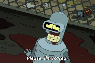 Please, I'm scared. We're all scared. It's the human condition. Why do you thinks I put on this tough-guy facade? Now, beat it!