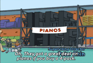 Oh, They got a great deal on pianos if you buy a 4-pack. Meg, help me get these down. LOIS? Oh, my God!