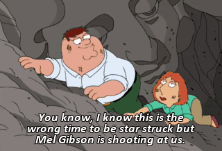 You know, I know this is the wrong time to be star struck but Mel Gibson is shooting at us.