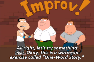 All right, let's try something else. Okay, this is a warm-up exercise called "One-Word Story."