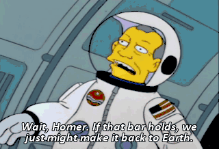 Wait, Homer. If that bar holds, we just might make it back to Earth. Hmm. And I'll bash you good! Give me that! Well, this reporter was possibly a little hasty earlier...