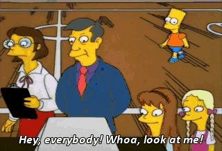 Hey, everybody! Whoa, look at me! I'm over here! Turn this way right now! Hey, it's Bart. And he's doing stuff.