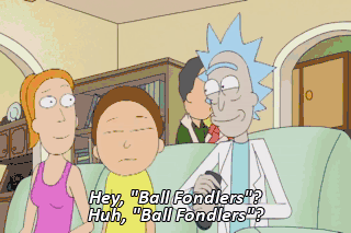 Hey, "Ball Fondlers"? Huh, "Ball Fondlers"? Yeah, I could go for some "Ball Fondlers." Yeah, "Ball Fondlers." Aah!