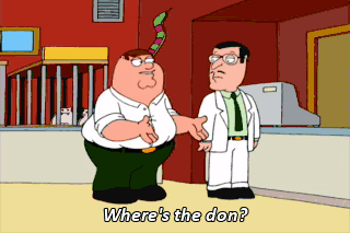 Where's the don? The don? I don't know what you're talking about. Aw, Come on. The don, the captain of the mafia. Peter, there is no such thing as the mafia.