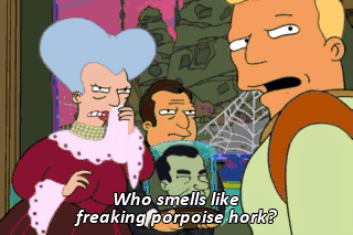 Who smells like freaking porpoise hork? I do! Kiss me, Kif.
