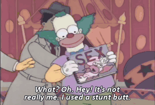What? Oh. Hey! It's not really me. I used a stunt butt.